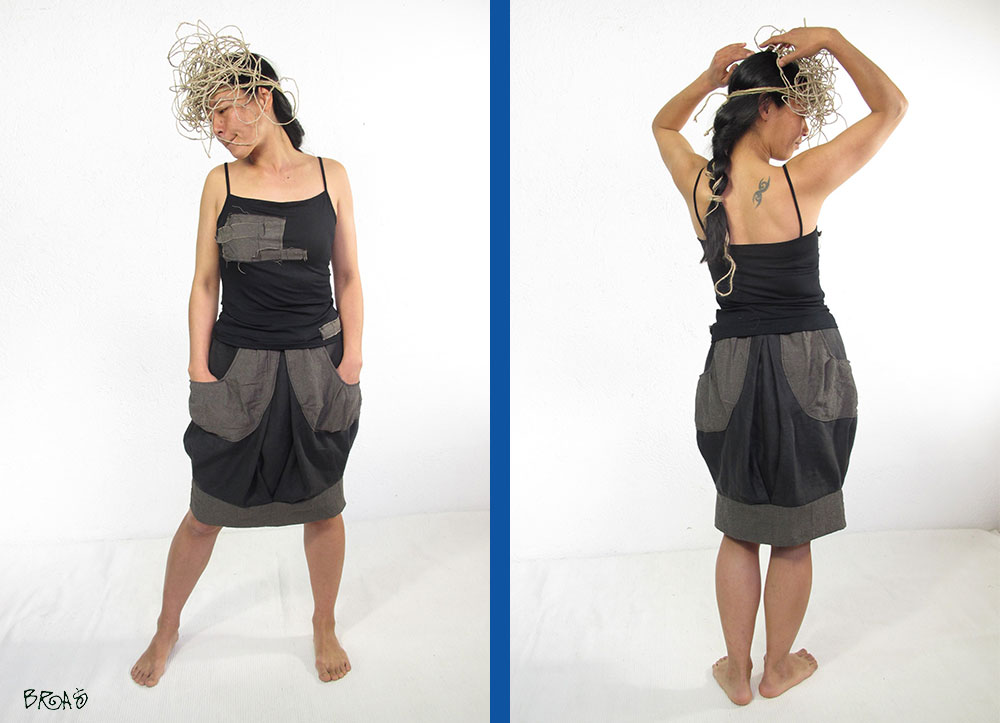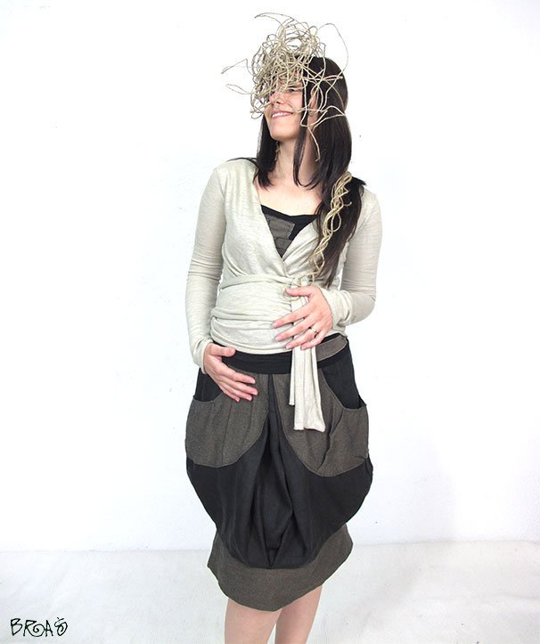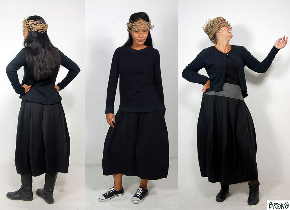 La ropa diseñada por las hermanas Dominika y Bea Bras, está hecha con telas de calidad, escogidas cuidadosamente. Experimentando con distintos tipos de tejidos y combinaciones de texturas consiguen que la línea sea diferente y original.